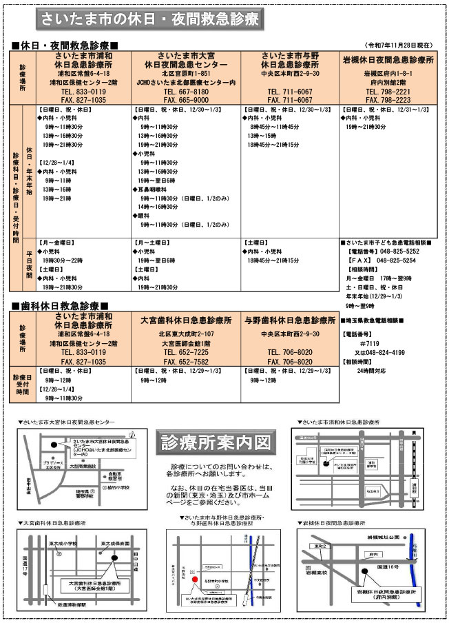 ▷ さいたま市の休日・夜間救急診療について(さいたま市 HP)